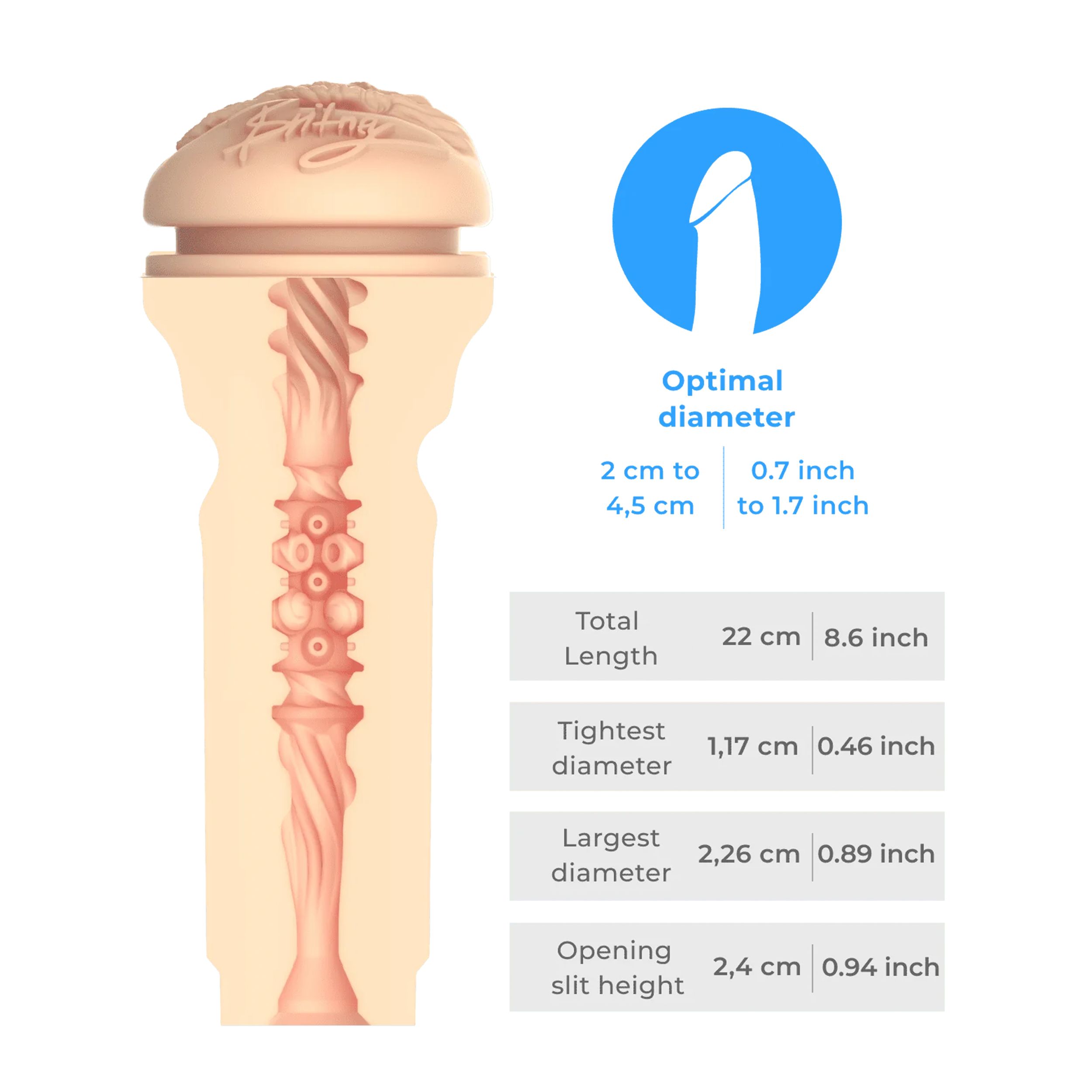 Met de combinatie van realistische vorm, vernieuwde textuur en interactieve mogelijkheden is deze masturbator een sterke keuze voor mannen die meer uit hun toy willen halen.