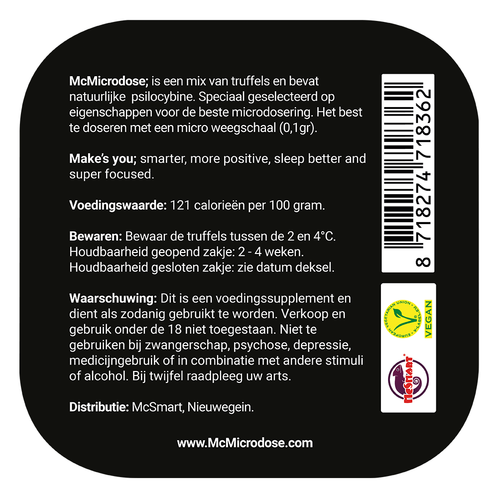 McMicrodose is een mix van truffels en bevat natuurlijke psilocybine. Speciaal geselecteerd op de beste eigenschappen voor de microdosering.