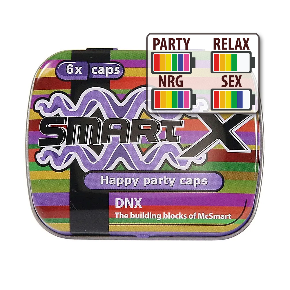 Smart X (DNX) combineert drie populaire party capsules in één verpakking. Mix & match voor energie, sensualiteit en euforie tijdens elke party.